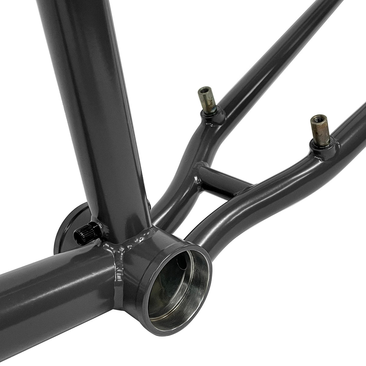 - Chainstay welded-on brake mounts – Integrated brake tabs provide reliable brake mounting without frame drilling; allows U-brake or other chainstay-mounted brake systems