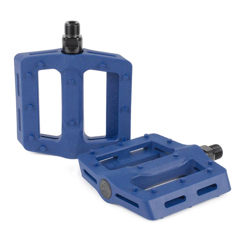 The pedal is a key contact point between you and your bike, so we made the new Shadow Surface Pedal with performance and function in mind. We started with a wider and longer, slim platform. The wide 105mm x 100mm platform is specifically shaped to be thin and stiff while still offering an overall concave shape. We added advanced micro knurling and 12 pins per side for a maximum grip that still allows foot adjustments mid-shred. Made with the same proven nylon composite material as the Ravager pedal, with a heat treated chromoly axle that includes a 6mm broach for ease of installation and high end looks.