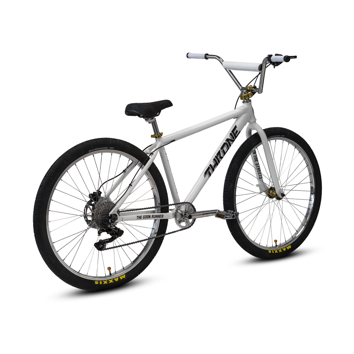 Presenting our newest Goon 29" BMX bike, The Goon Runner White Lux. With stronger components than ever before! Coming stocked with 10 SPEEDS. Grind, swerve, wheelie, etc. all you want! Now with hydraulic brakes with incredible stopping power, The Goon Runner White Lux is 10x stronger! #THRONETAKEOVER #RUNTHESTREETS #